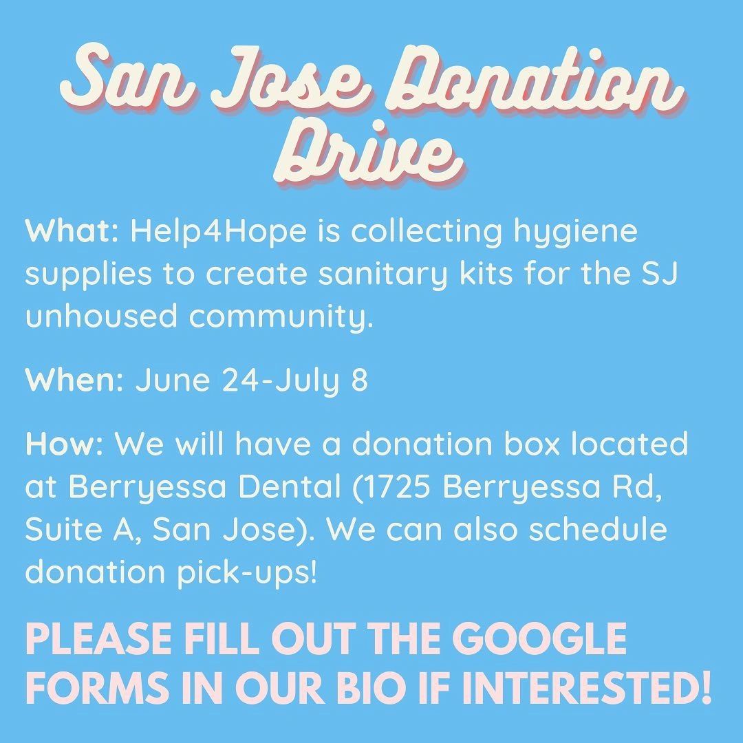 We are hosting a summer drive to support those lacking access to hygiene necessities. If interested, please fill out the donor interest form linked on our Facebook/Instagram or contact us directly @ project.help4hope@gmail.com. Thank you for your consideration!